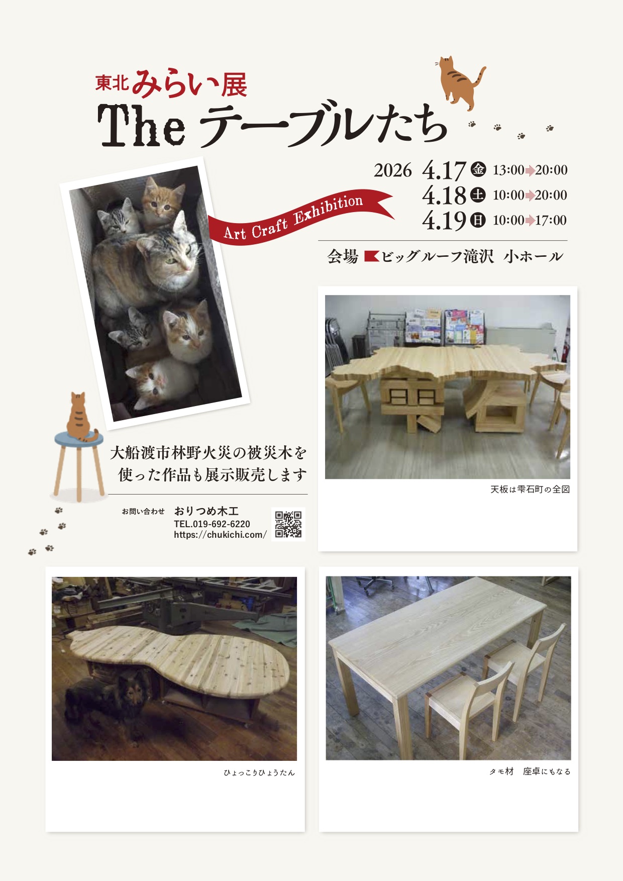 2026-03-31 東北みらい展 「東北みらい展」は、今回で5回目の開催です。県内の10工房が出展します。 Home › 展示会 › 東北みらい展 関連記事 雫石あねっこ クラフト市 新宿オゾン MOCTIONで 岩手県の展示 クロステラス盛岡で 木工体験 岩手県の観光と物産展 木とふれあう日曜日 東北みらい展